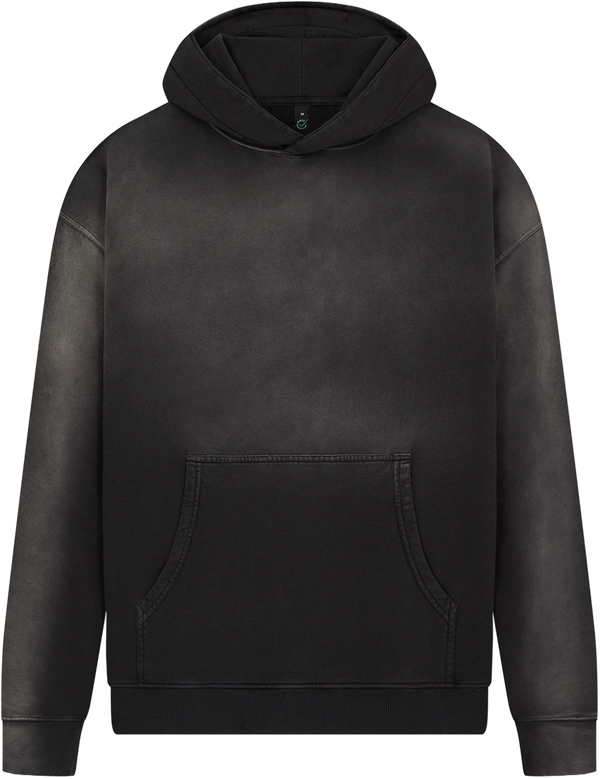 Hieman cropattu, eli perinteistä hupparia lyhempi malli. Oversize ja streetwear fiilistä, normaalia leveämpi mitoitus. Ei hupun kiristysnyörejä.